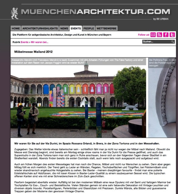 MOEBELMESSE MAILAND 2012 – SALONE DEL MOBILE DI MILANO – THE FAKE FACTORY Posted on June 28, 2012 by stefano fake MOEBELMESSE MAILAND 2012 – SALONE DEL MOBILE DI MILANO – THE FAKE FACTORY 2012 Share this: Share on X (Opens in new window) X Share on Facebook (Opens in new window) Facebook Like Loading... Related