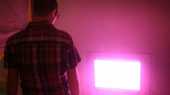 La stanza doveva essere abbastanza piccola da poter sembrare una normale living room domestica. La percezione che ne deriva è che il potere del mezzo è tanto evidente da espandersi e colorare tutto ciò che è presente nella stanza…una visibile dimostrazione della incredibile capacità della TV di influenzare la percezione stessa del reale.