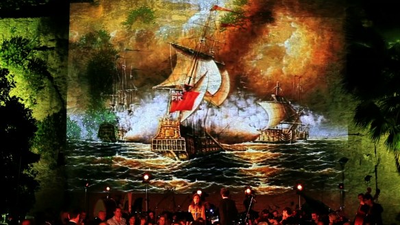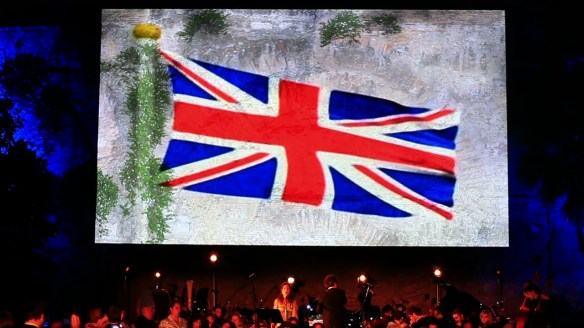 All’imbrunire, una performance esclusiva per gli ospiti del Diamond Jubilee Party realizzata dall’Orchestra Italiana del Cinema, con il finanziamento del Consiglio Regionale del Lazio, il patrocinio dell’Unesco e sotto l’Alto Patronato della Presidenza della Repubblica, segnerà la spettacolare conclusione dell’evento. Un organico di 35 elementi di orchestra e 30 di coro accompagnerà con le note di Piero Piccioni e Edward Elgar le immagini tratte da celebri pellicole della cinematografia italiana e britannica e proiettate sugli archi dell’acquedotto romano che attraversa il parco di Villa Wolkonsky.