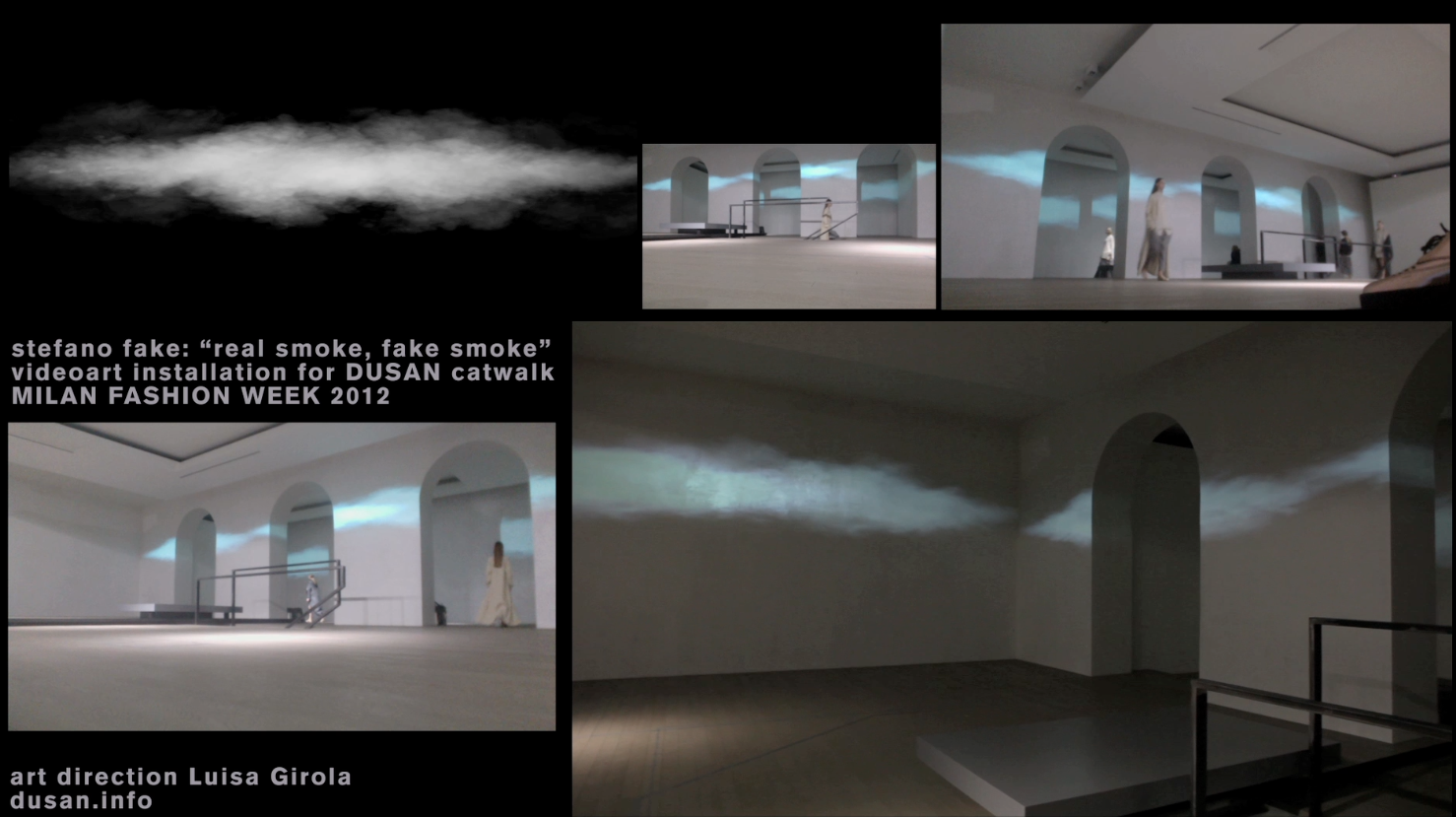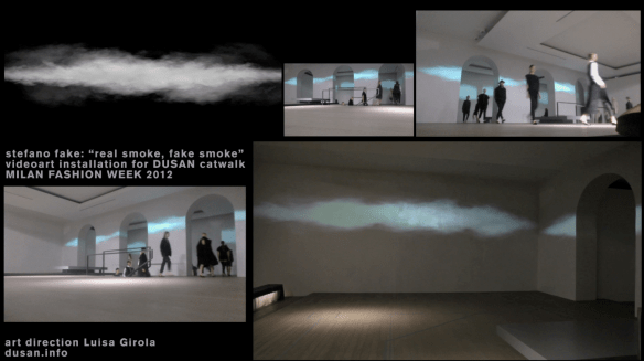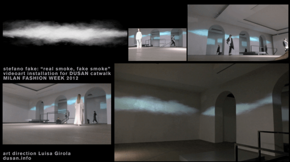 STEFANO FAKE “REAL SMOKE, FAKE SMOKE”, videoinstallation 2012 Posted on October 27, 2012 by stefano fake STEFANO FAKE “REAL SMOKE, FAKE SMOKE”, videoinstallation 2012 Share this: Share on X (Opens in new window) X Share on Facebook (Opens in new window) Facebook Like Loading... Related