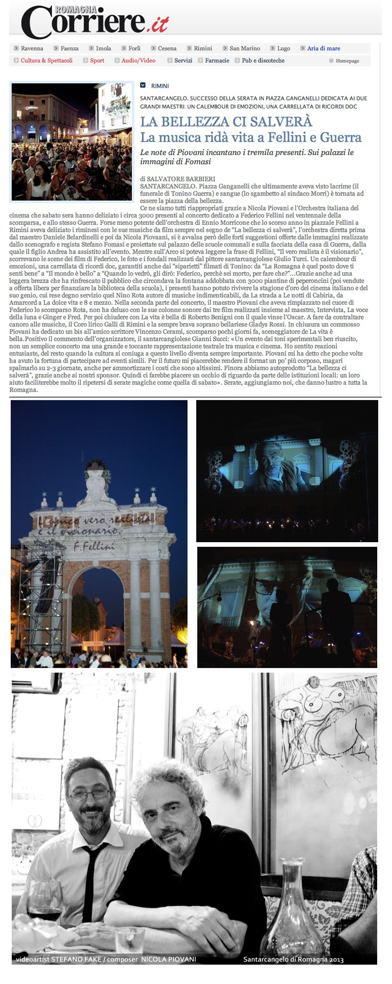 SANTARCANGELO STEFANO FAKE PIOVANI FELLINI TONINO GUERRA Published July 30, 2013 at 769 × 1931 in Santarcangelo di Romagna rende omaggio a Federico Fellini e Tonino Guerra con “La bellezza ci salverà”, un concerto-spettacolo con le scenografie video di The Fake Factory