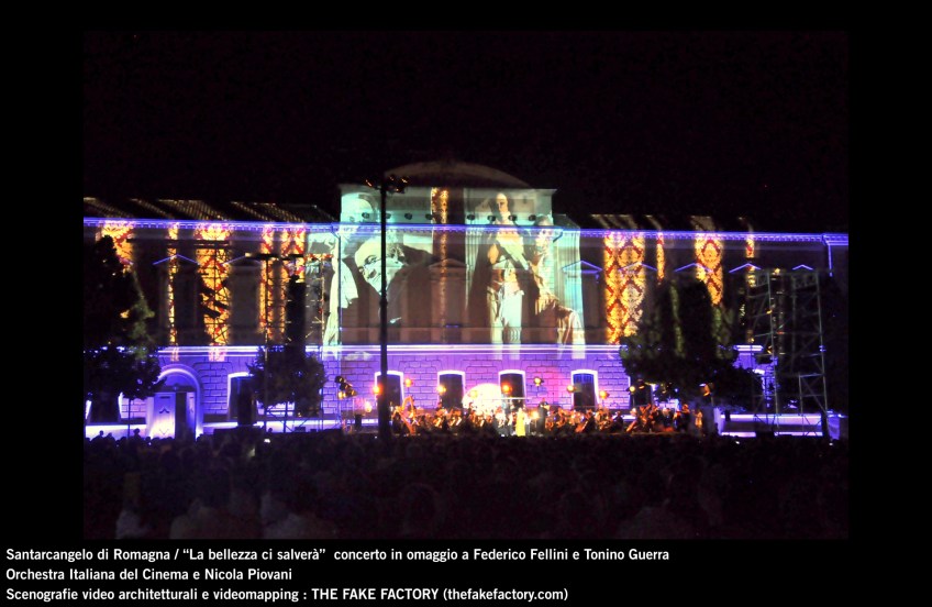 the fake factory videomapping concerto santarcangelo Federico Fellini Tonino Guerra_00041 Published August 25, 2013 at 1920 × 1250 in SANTARCANGELO DI ROMAGNA “La bellezza ci salverà” ORCHESTRA ITALIANA DEL CINEMA e NICOLA PIOVANI : concerto per FEDERICO FELLINI E TONINO GUERRA