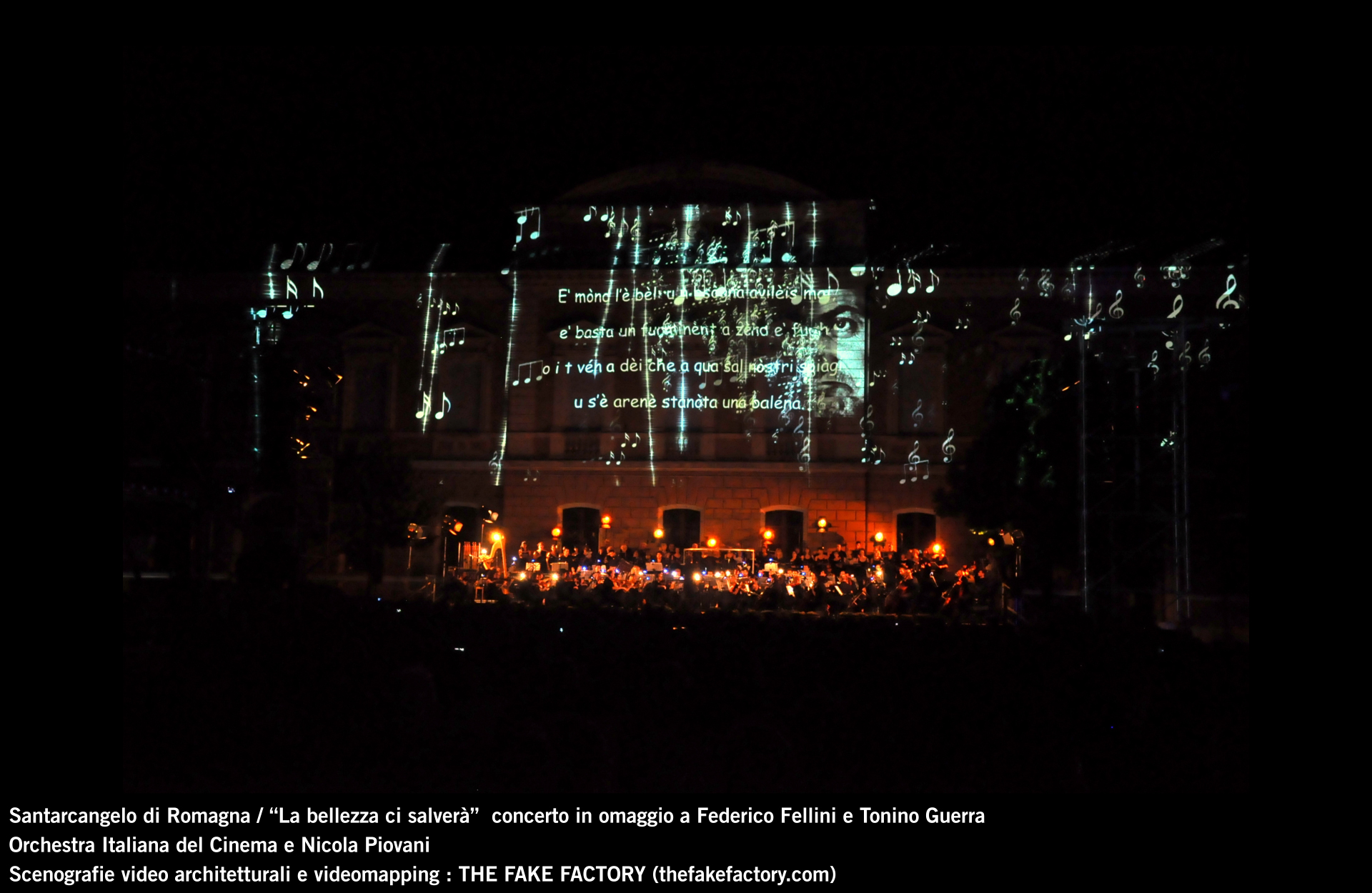 the fake factory videomapping concerto santarcangelo Federico Fellini Tonino Guerra_00062 Published August 25, 2013 at 1920 × 1250 in SANTARCANGELO DI ROMAGNA “La bellezza ci salverà” ORCHESTRA ITALIANA DEL CINEMA e NICOLA PIOVANI : concerto per FEDERICO FELLINI E TONINO GUERRA
