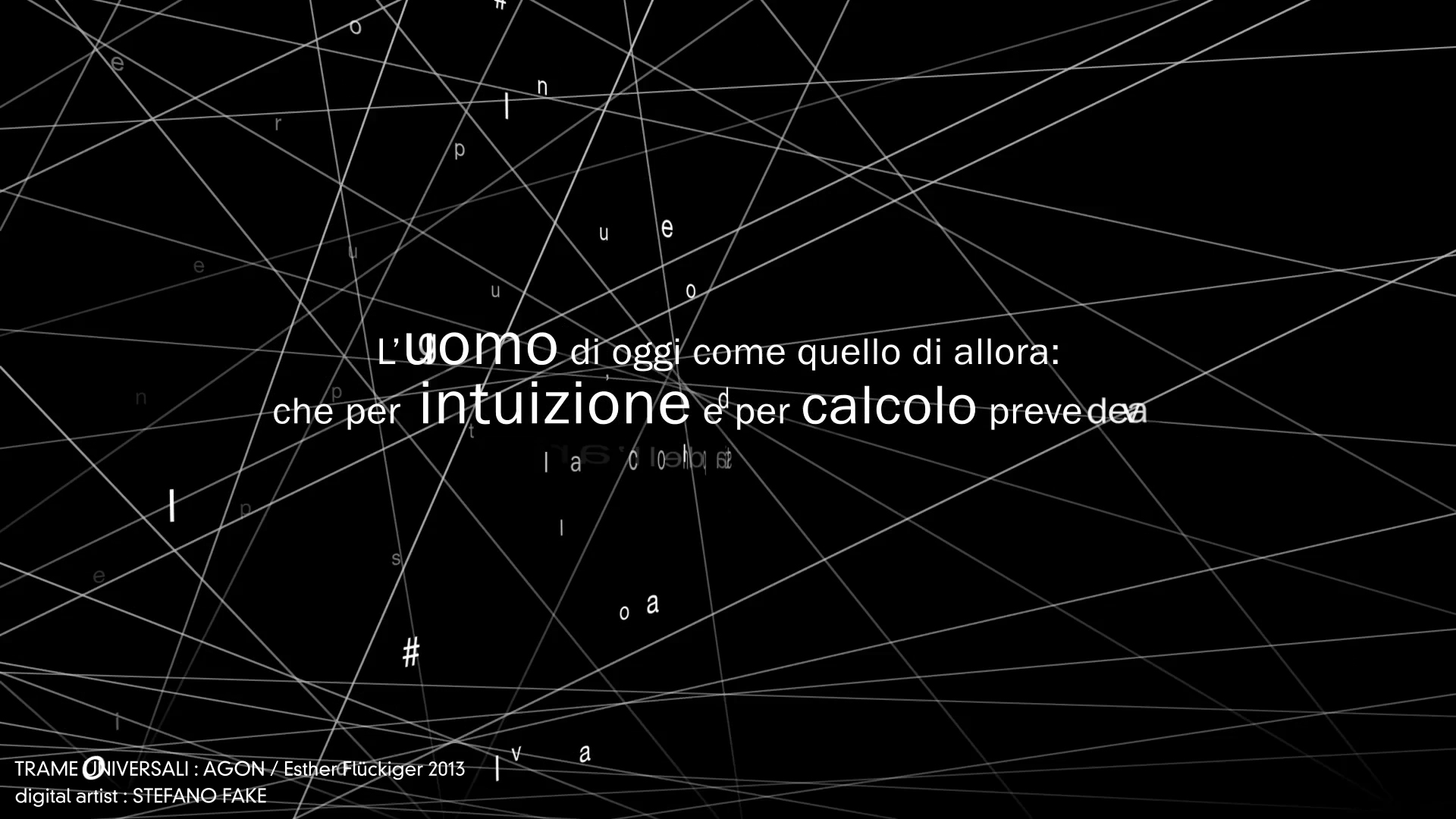 TRAME UNIVERSALI – DIGITAL LETTERING STEFANO FAKE – THE FAKE FACTORY_00470 Published December 8, 2013 at 1920 × 1080 in Trame Universali – Suono e materia sull’eco di Leonardo da Vinci (ideazione artistica Esther Flückiger / produzione AGON – 2013) – DIGITAL VIDEO DESIGN created by STEFANO FAKE