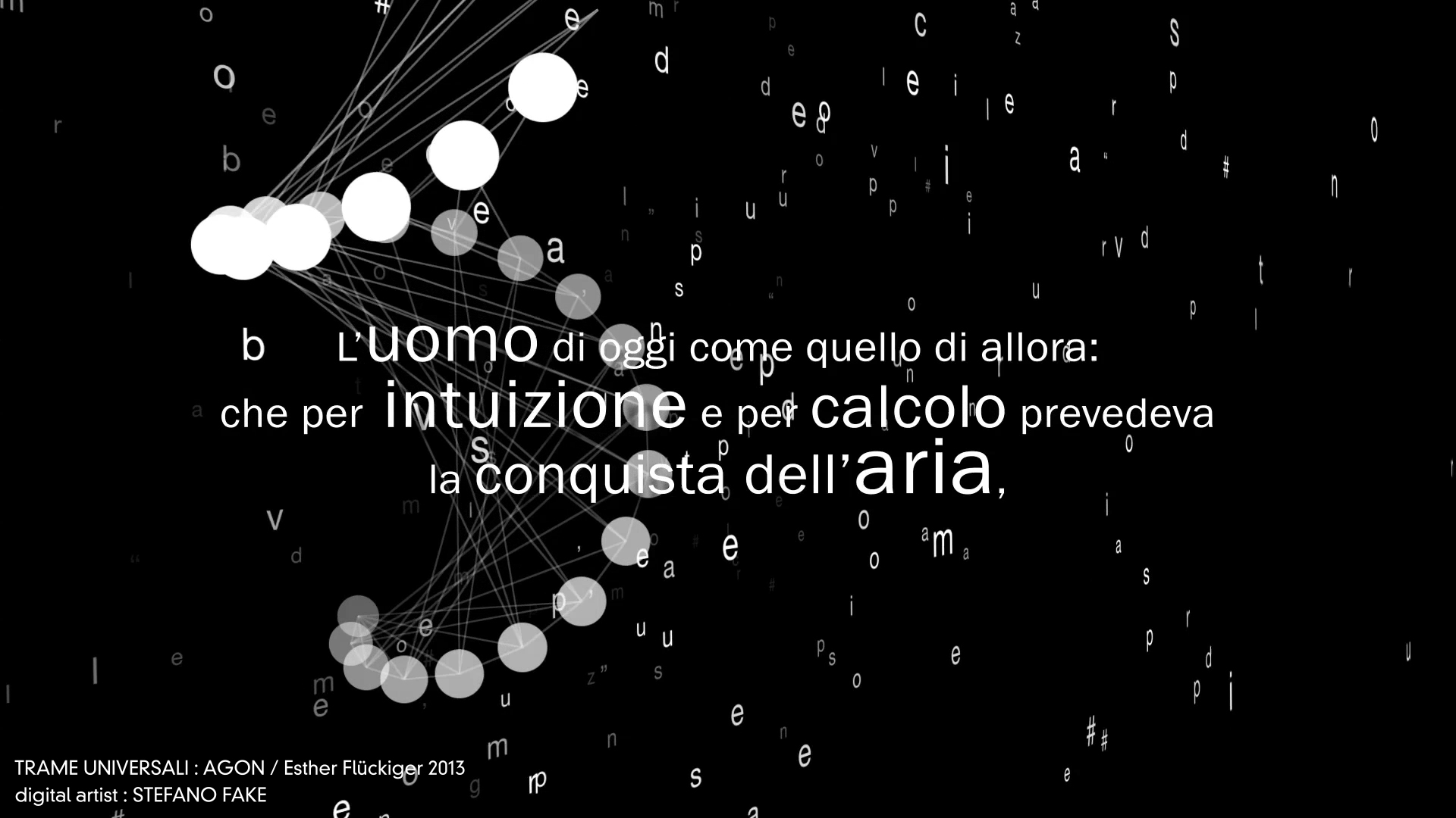 TRAME UNIVERSALI – DIGITAL LETTERING STEFANO FAKE – THE FAKE FACTORY_01054 Published December 8, 2013 at 1920 × 1080 in Trame Universali – Suono e materia sull’eco di Leonardo da Vinci (ideazione artistica Esther Flückiger / produzione AGON – 2013) – DIGITAL VIDEO DESIGN created by STEFANO FAKE