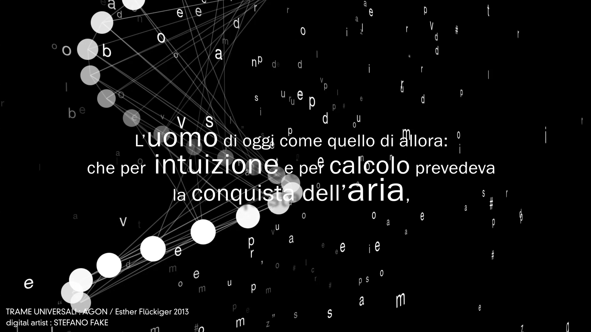 TRAME UNIVERSALI – DIGITAL LETTERING STEFANO FAKE – THE FAKE FACTORY_01117 Published December 8, 2013 at 1920 × 1080 in Trame Universali – Suono e materia sull’eco di Leonardo da Vinci (ideazione artistica Esther Flückiger / produzione AGON – 2013) – DIGITAL VIDEO DESIGN created by STEFANO FAKE