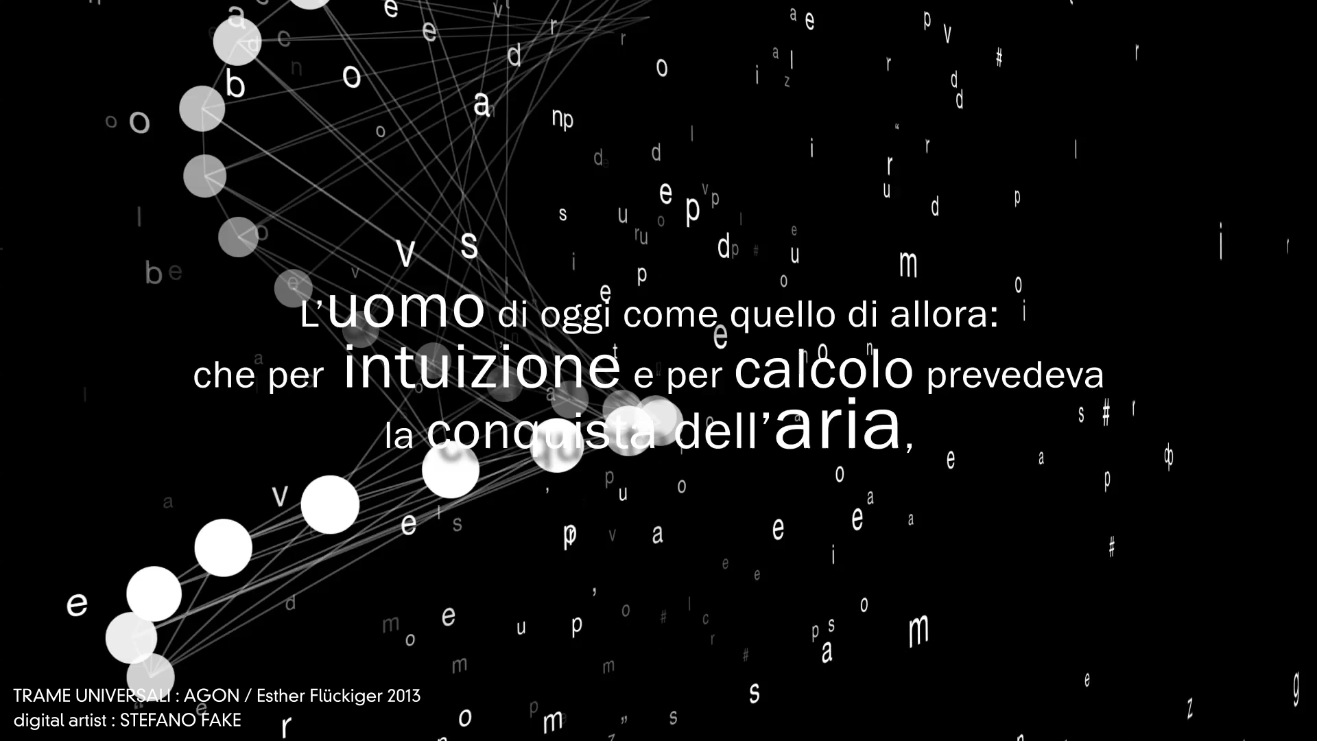 TRAME UNIVERSALI – DIGITAL LETTERING STEFANO FAKE – THE FAKE FACTORY_01128 Published December 8, 2013 at 1920 × 1080 in Trame Universali – Suono e materia sull’eco di Leonardo da Vinci (ideazione artistica Esther Flückiger / produzione AGON – 2013) – DIGITAL VIDEO DESIGN created by STEFANO FAKE