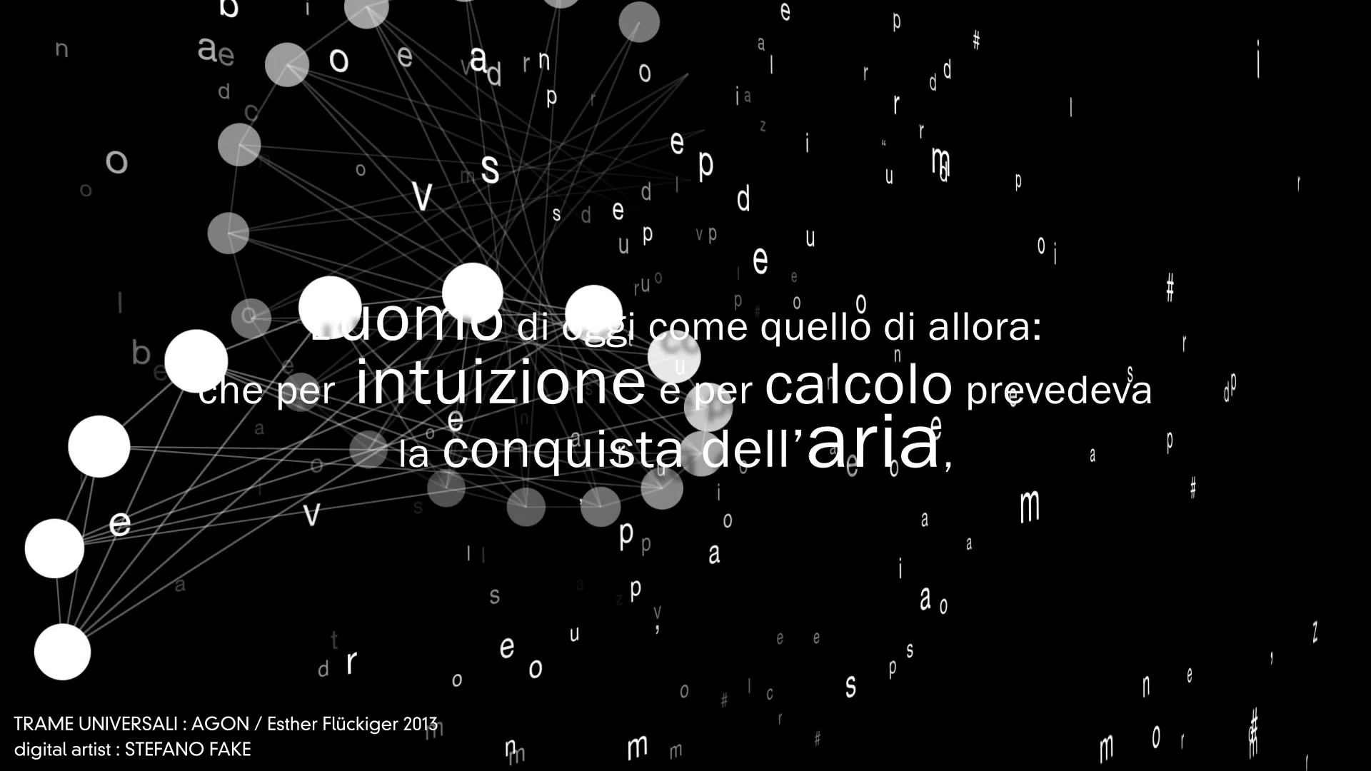 TRAME UNIVERSALI – DIGITAL LETTERING STEFANO FAKE – THE FAKE FACTORY_01163 Published December 8, 2013 at 1920 × 1080 in Trame Universali – Suono e materia sull’eco di Leonardo da Vinci (ideazione artistica Esther Flückiger / produzione AGON – 2013) – DIGITAL VIDEO DESIGN created by STEFANO FAKE
