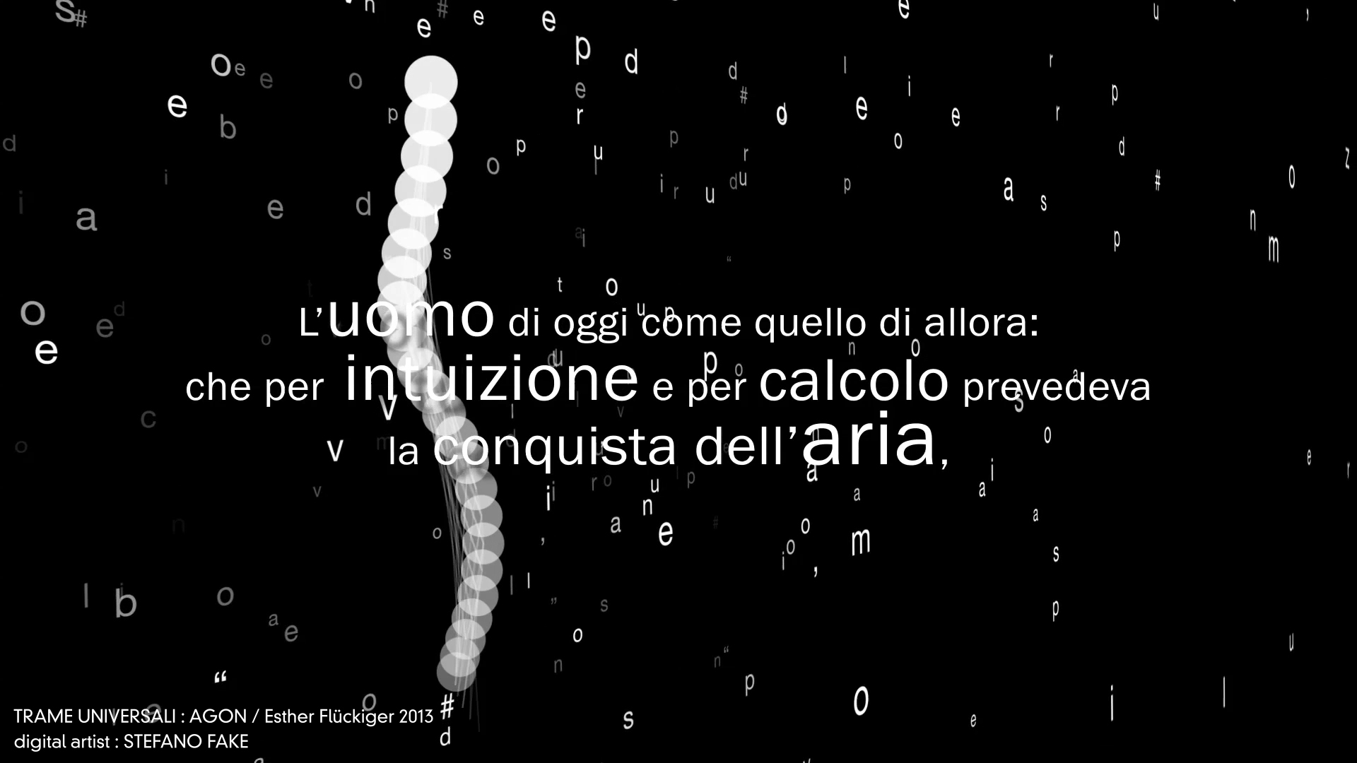 TRAME UNIVERSALI – DIGITAL LETTERING STEFANO FAKE – THE FAKE FACTORY_01291 Published December 8, 2013 at 1920 × 1080 in Trame Universali – Suono e materia sull’eco di Leonardo da Vinci (ideazione artistica Esther Flückiger / produzione AGON – 2013) – DIGITAL VIDEO DESIGN created by STEFANO FAKE