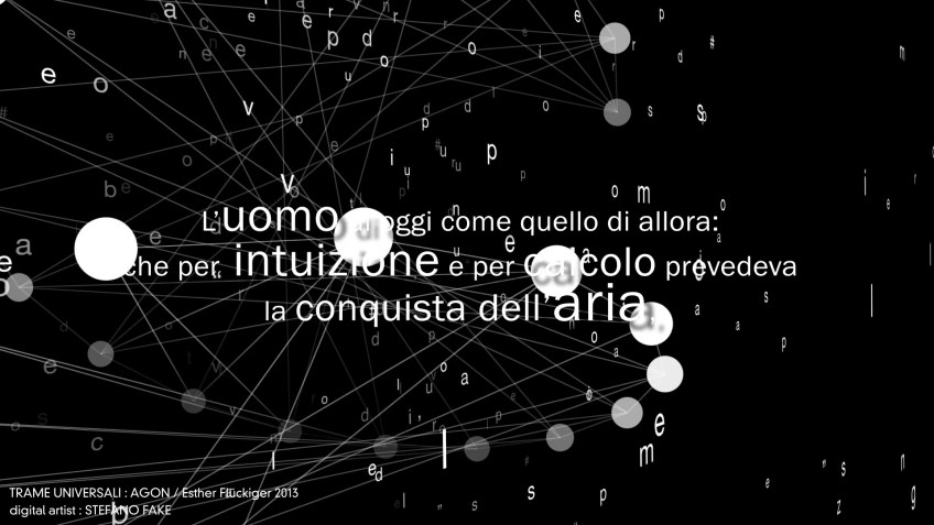 TRAME UNIVERSALI – DIGITAL LETTERING STEFANO FAKE – THE FAKE FACTORY_01375 Published December 8, 2013 at 1920 × 1080 in Trame Universali – Suono e materia sull’eco di Leonardo da Vinci (ideazione artistica Esther Flückiger / produzione AGON – 2013) – DIGITAL VIDEO DESIGN created by STEFANO FAKE