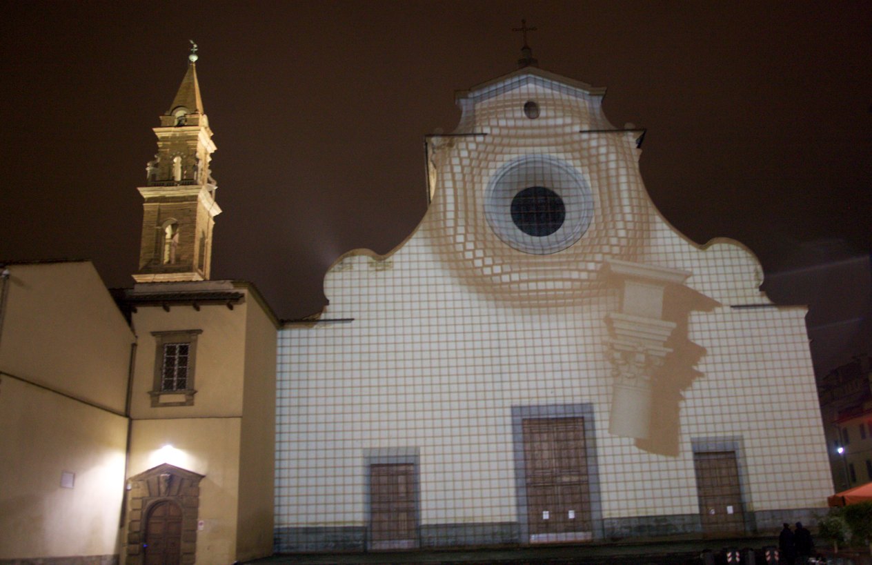 @thefakefactory #flight2013_16 Published December 16, 2013 at 1264 × 819 in “Dimora luminosa”, videoproiezione architetturale sulla facciata della Basilica di Santo Spirito
