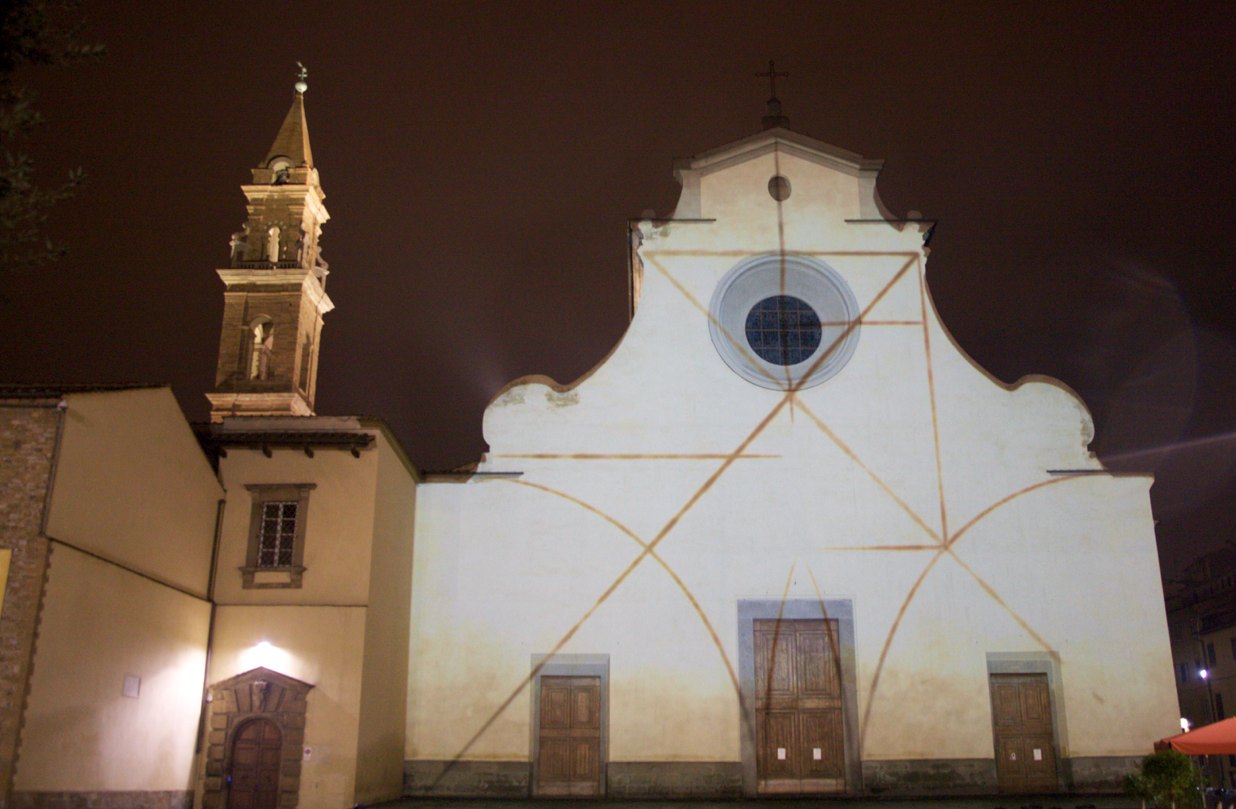 @thefakefactory #flight2013_20 Published December 16, 2013 at 1236 × 809 in “Dimora luminosa”, videoproiezione architetturale sulla facciata della Basilica di Santo Spirito