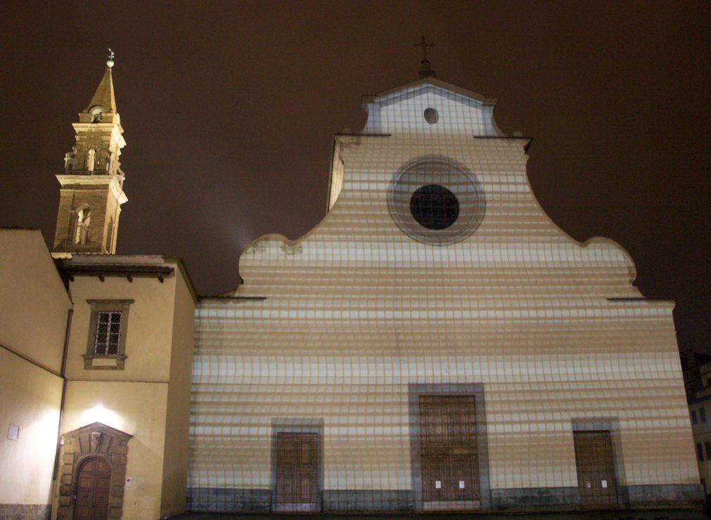 @thefakefactory #flight2013_24 Published December 16, 2013 at 1011 × 740 in “Dimora luminosa”, videoproiezione architetturale sulla facciata della Basilica di Santo Spirito