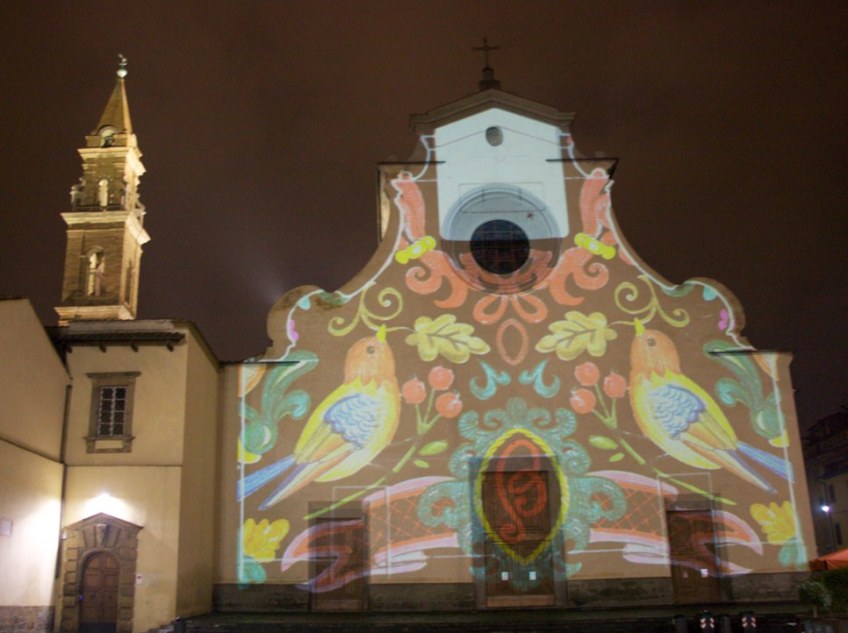 @thefakefactory #flight2013_6 Published December 16, 2013 at 966 × 722 in “Dimora luminosa”, videoproiezione architetturale sulla facciata della Basilica di Santo Spirito