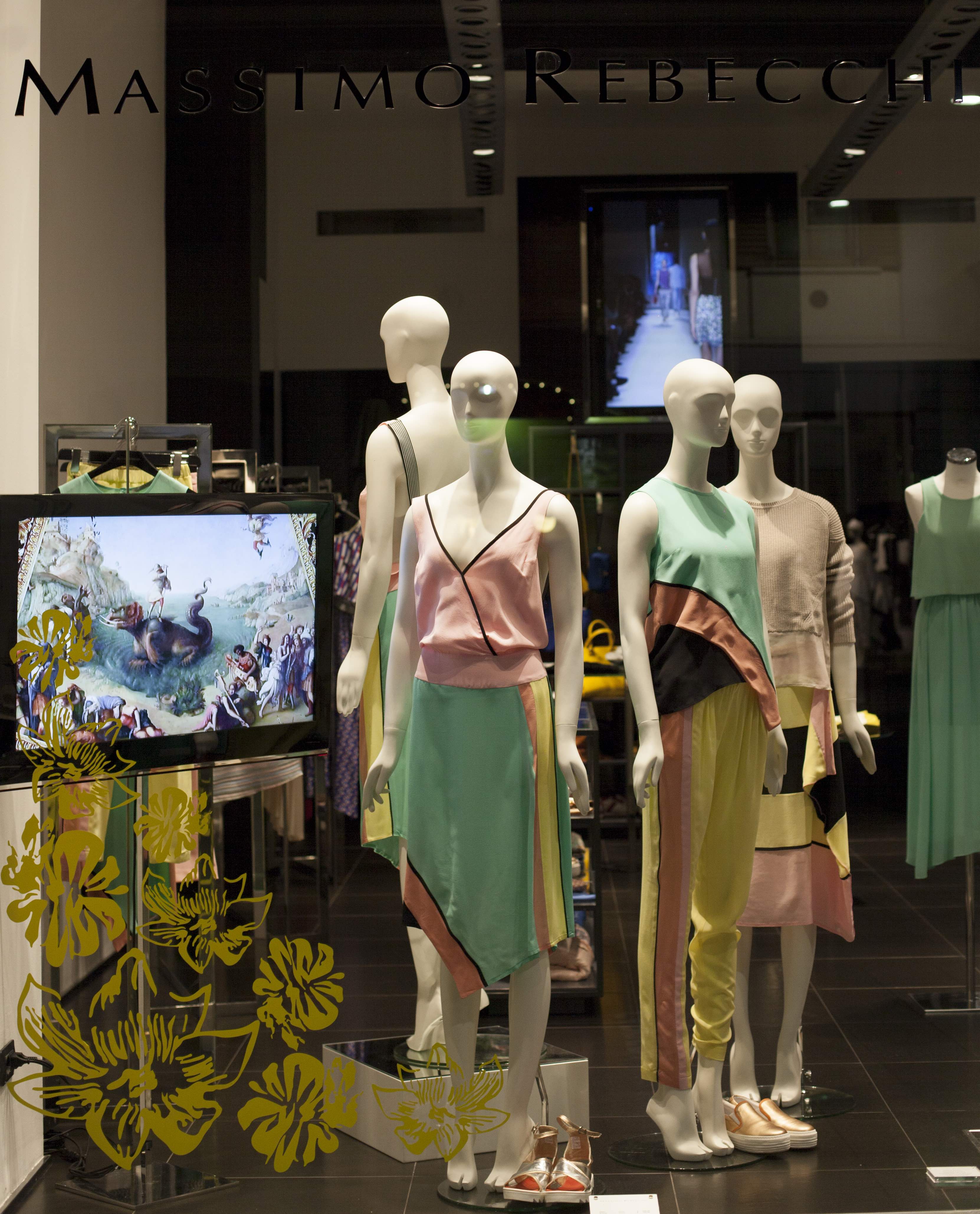 Un percorso–protagonista anche nelle vetrine di Massimo Rebecchi con un allestimento ad hoc – che sarà mostrato con videoinstallazioni che illumineranno gli interni delle boutique a partire dal 15 aprile con un cocktail esclusivo di inaugurazione dalle ore 18 alle ore 21 per il quale sono attesi molti ospiti. Le vetrine di Massimo Rebecchi, un vero e proprio omaggio alla bellezza femminile, riconfermano lo stretto legame tra la maison e le correnti artistiche d’avanguardia e sperimentali.