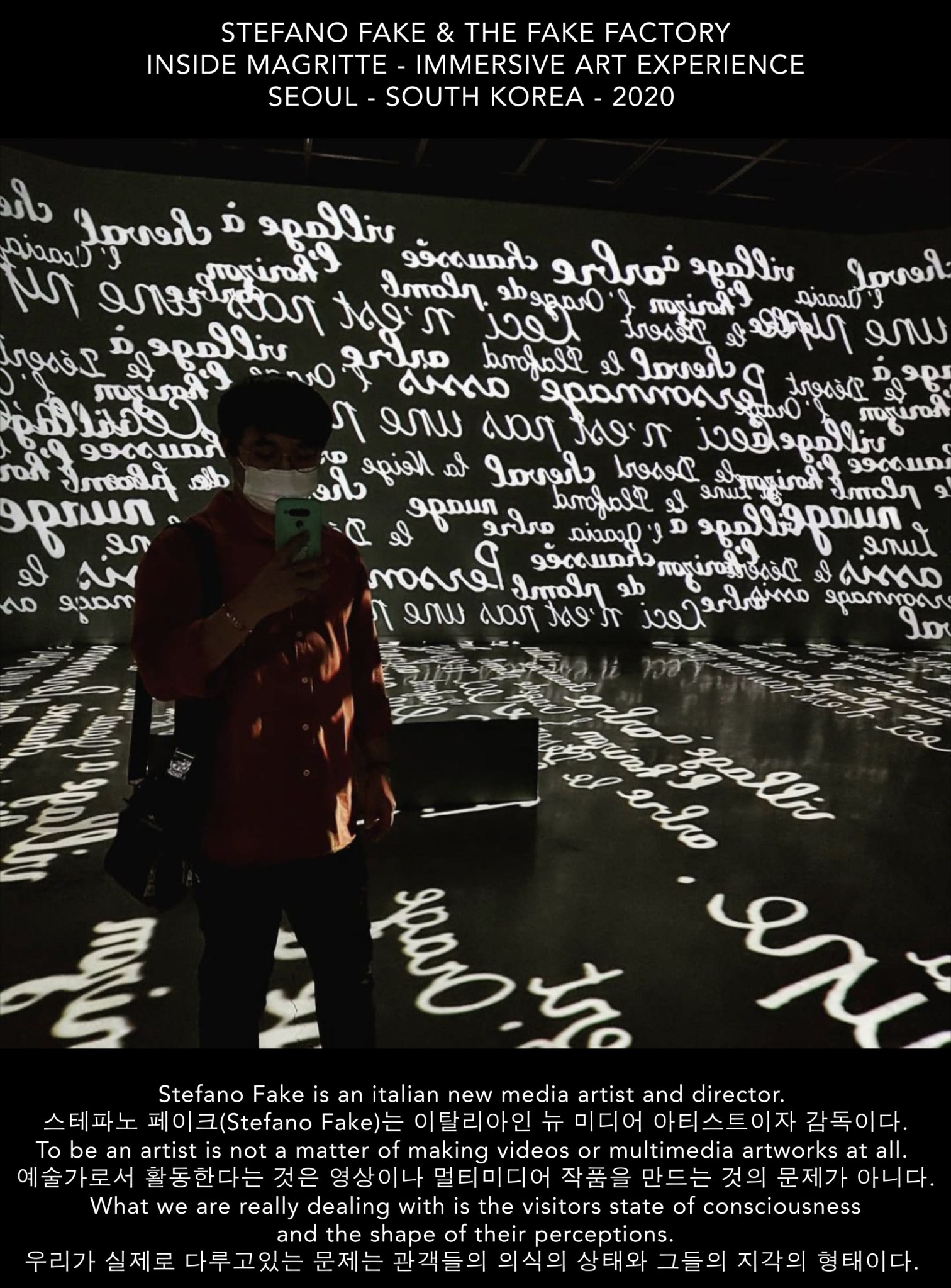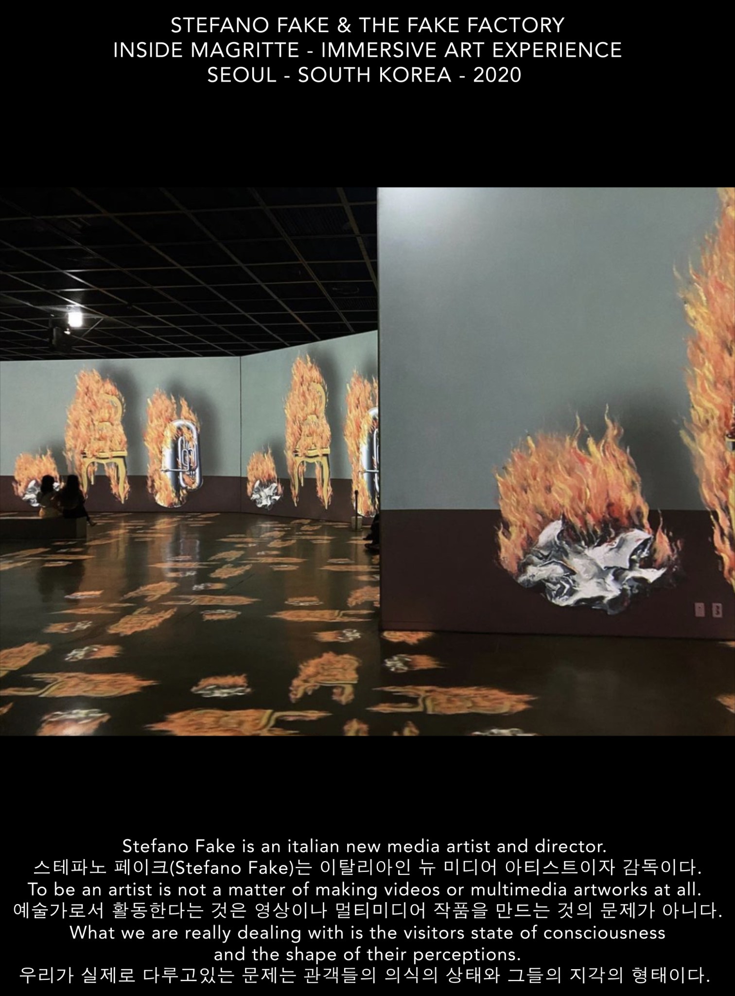 그는 그의 작업실인 더 페이크 팩토리(THE FAKE FACTORY)에서 세계적으로 가장 권위있는 박물관과 미술관들에서 선보인 가장 중요한 몰입형 멀티미디어 아트 체험을 디자인하고 직접 감독, 제작하였다.