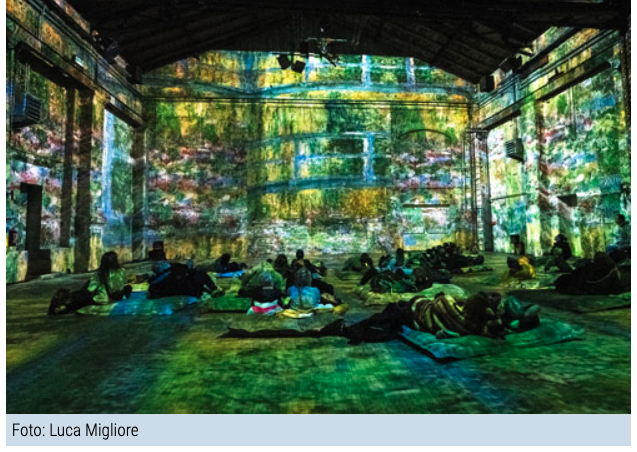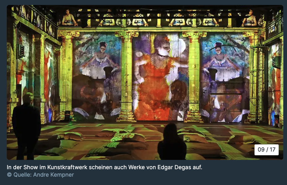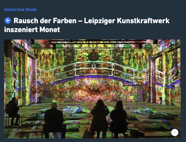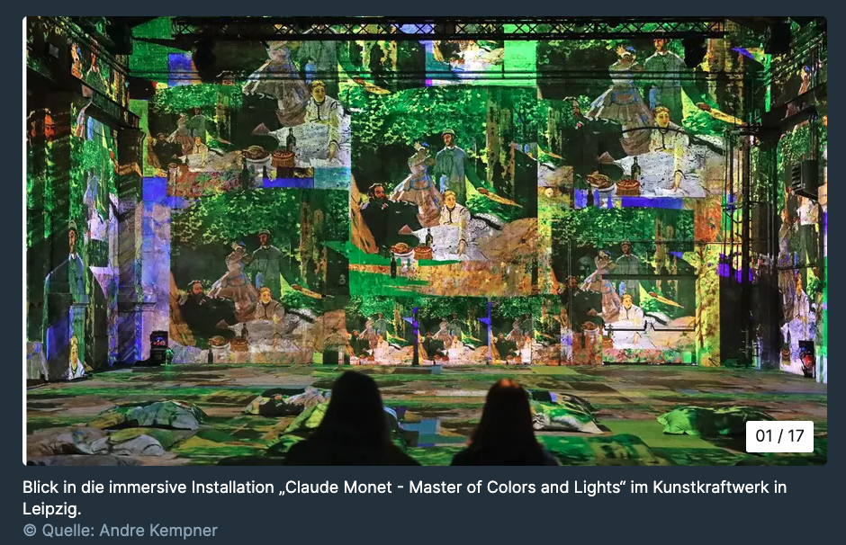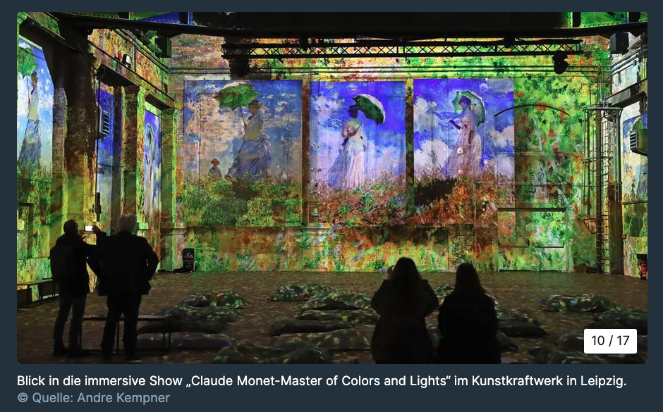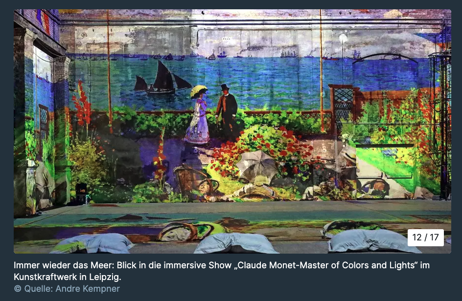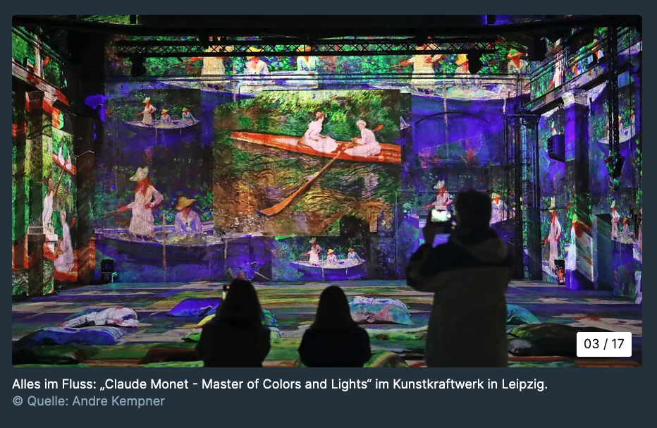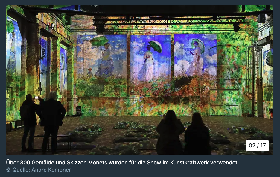 Das Spiel mit Licht und Farben des Altmeisters wirkt hier modern und mutig digital. Das Kunstkraftwerk denkt Monet auch weiter – bis hin zur Interaktion zwischen Mensch und Motiv.