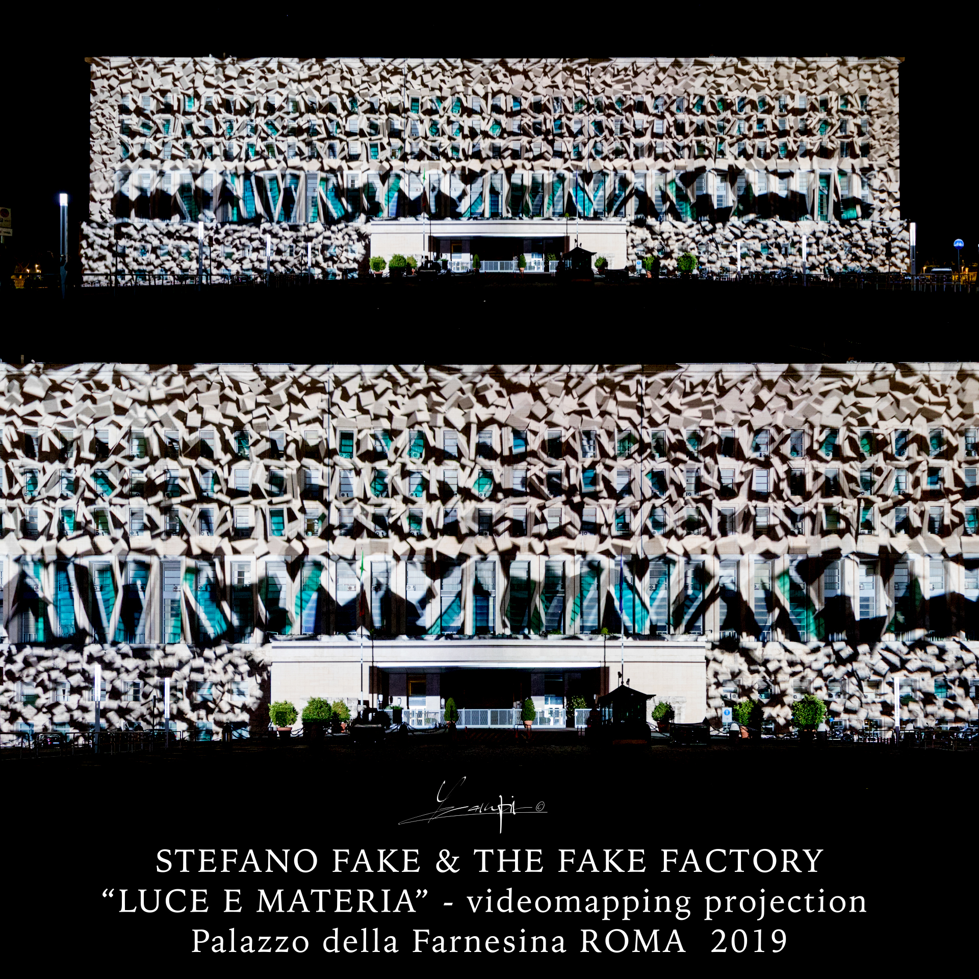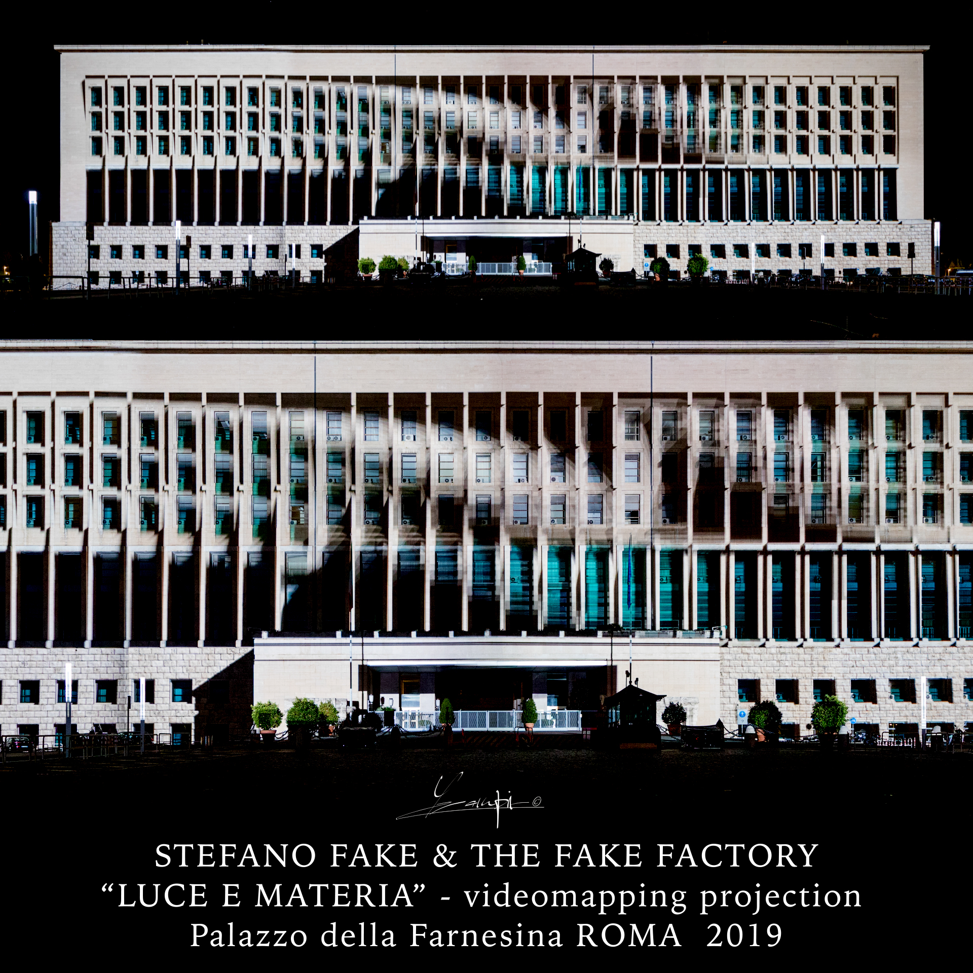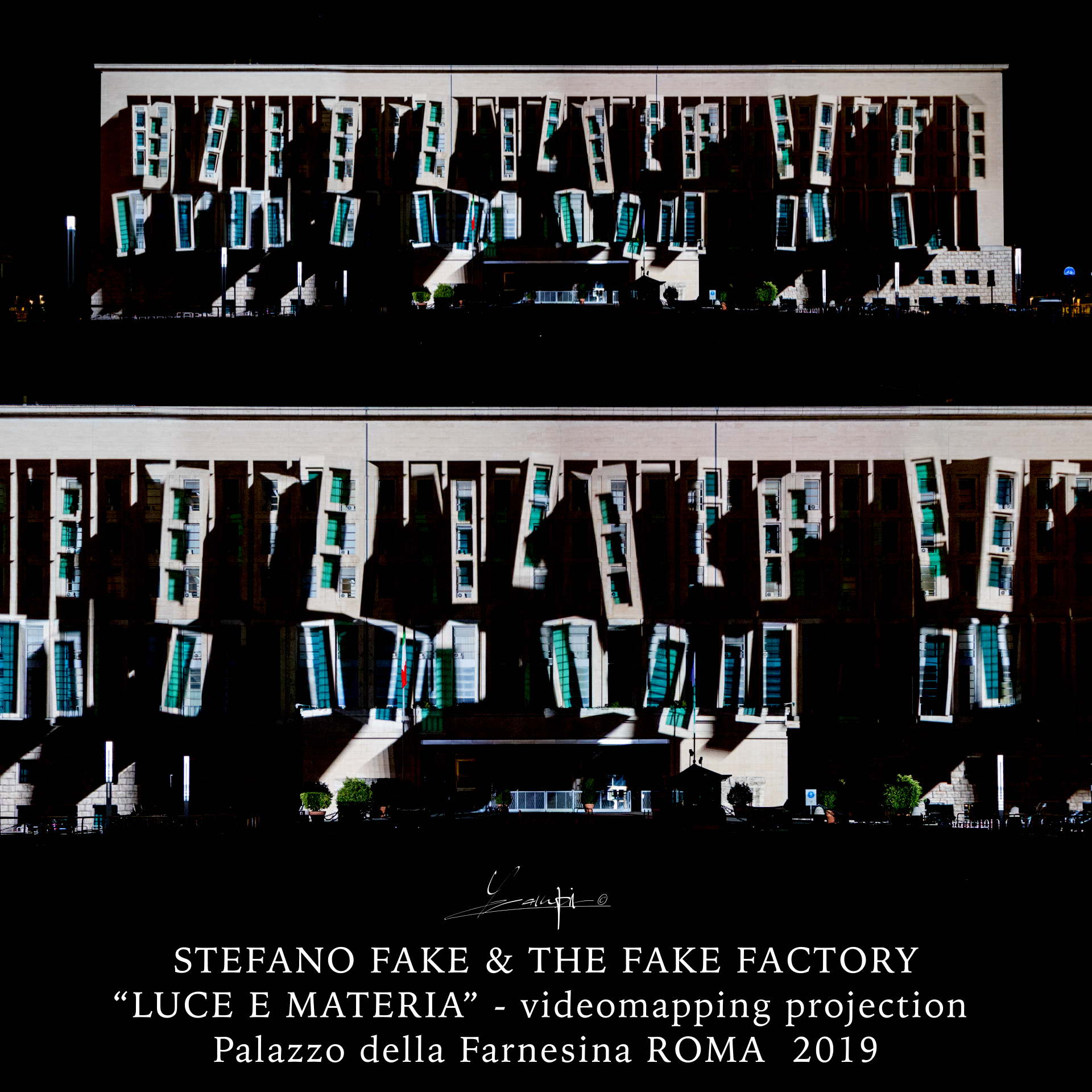 Stefano Fake has always been an experimenter of art with his free-standing vision, the multi-disciplinarity, the meeting and integration between different arts. He navigates through various disciplines without any subscription to a particular category and without having to judge loyalty to itself. An artist who has always observed the world by his installations reproducing it by his meticulous orchestration of space, lights, images, music and sound layers weaved for creating a unique art experience.
