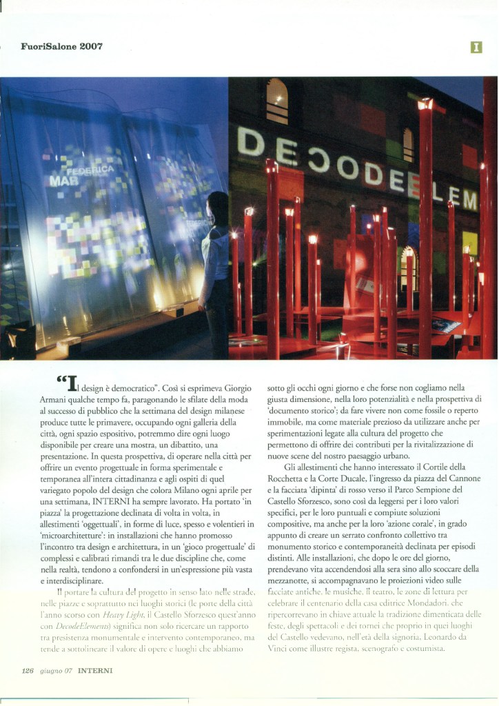 video design INTERNI FUORISALONE15 Published December 30, 2011 at 2480 × 3508 in WEB & PRESS Like Loading...